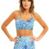 Channel warm rays and cool waters in this tranquil & serene print. The Triple Loop Sports Bra is named for its intricately laced shoulder straps – they meet at the back creating a pretty, looped pattern. Made from moisture-wicking UPF 50+ sun protection compression material, this style offers medium support that’s perfect for pilates, spin or yoga classes.